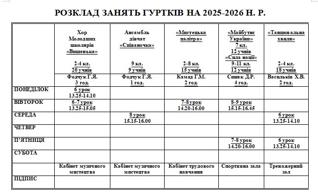 Розклад занять гуртків